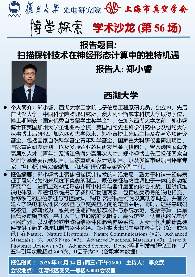 复旦大学光电研究院“博学探索”学术沙龙(第56场)